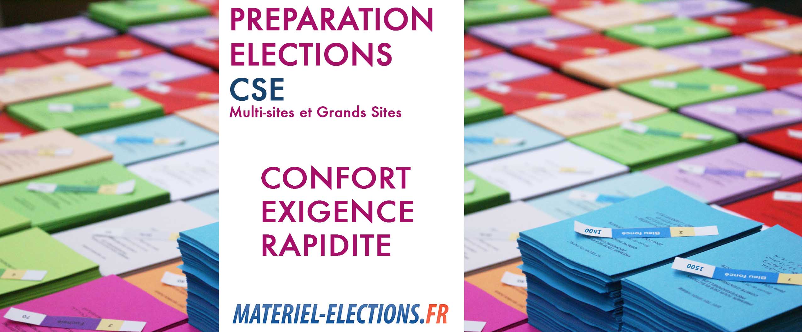 Bon nombre de responsables sont bien souvent pris de cours par la complexité de l'organisation d'un vote professionnel sur un site comptant plusieurs centaines de personnes. Il n'est pas rare, en effet, de compter jusqu'à une quarantaine de listes distinctes pour l'organisation simultanée des représentants du comité Sociel et économique sur un site de plus de 500, 1000, 1500 personnes. Les contraintes de couleur stipulées dans le protocole préélectoral ainsi que les mentions demandées par les différents participants au vote rendent le travail de préparation pour un non initié très complexe, il n'est pas rare qu'une personnes ou plusieurs personnes soient affectées à cette tâche pendant plus d'une semaine. Si l'on ajoute un délai nécessairement réduit entre le dépôt officiel des candidatures et les premiers envois aux votants à leur domicile, la tâche devient quasi impossible. Alors le responsable de l'organisation du vote (le dirigeant de l'entreprise) se retrouve sous le coup potentiel d'une annulation de scrutin. Nous intervenons lors de ces phases critiques afin d'éviter toute erreur afin de respecter les délais impartis à la réalisation d'un scrutin sans écueil.