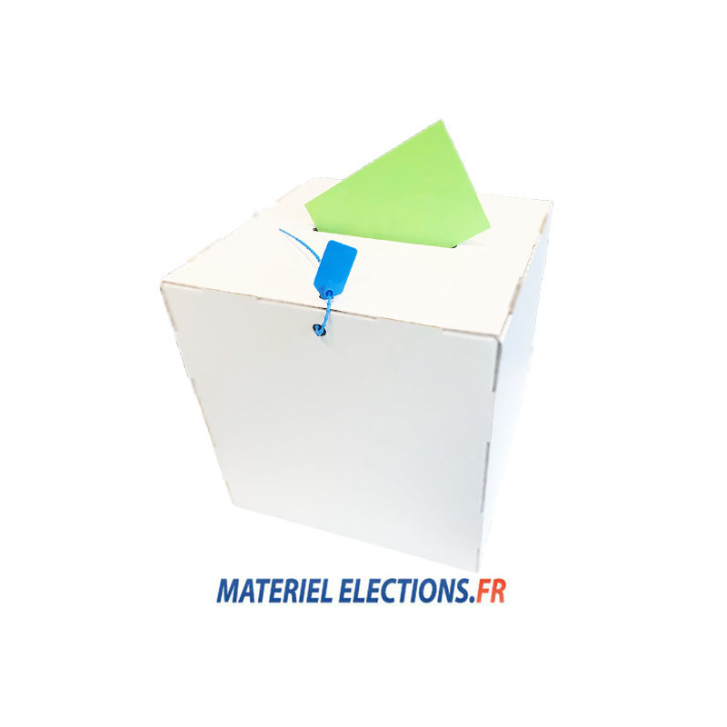 L'urne en carton blanche a pour dimension 25X25X25 (fente 128x9 mm). Livrée à plat, il vous suffira d'emboiter les "pattes" dans les fentes prévues à cet effet tel un cube maquette. Cette urne carton, résistante et stable, est facile et rapide à monter. Urne idéale pour élection CSE, associations, écoles. Le choix économique avec scellé.